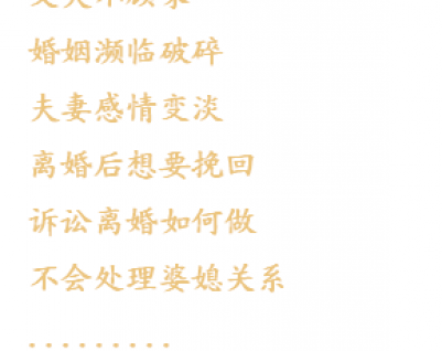眾夢(mèng)尋緣可以幫你解決任何情感問(wèn)題,無(wú)論你是想要離婚但是不知道該怎么做(離婚咨詢);還是夫妻感情平淡(感情變淡);還是挽回丈夫或者妻子(婚姻挽回);亦或是不知道如何和家人相處(婆媳關(guān)系)等等。我們都有相應(yīng)的情感導(dǎo)師,幫你解決你在婚姻中的情感問(wèn)題,為你的婚姻指明方向。